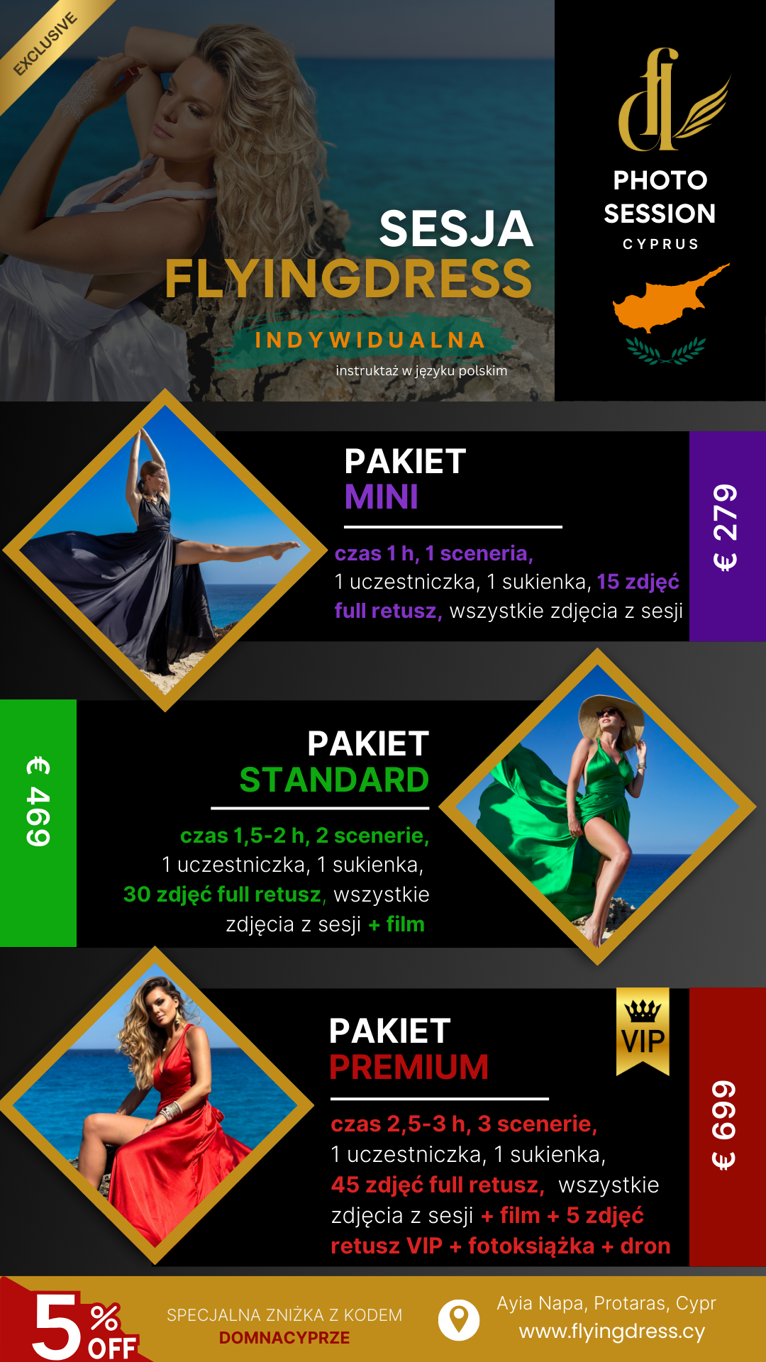 Nie czekaj, odkryj magię "Flying Dress" na Cyprze i stwórz niezapomniane wspomnienia, które zostaną z Tobą na zawsze. 🌟📸